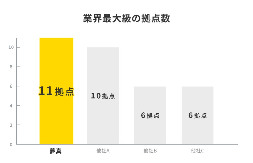 夢真は業界最大級の拠点数!日本全国11か所で建設現場を支えます