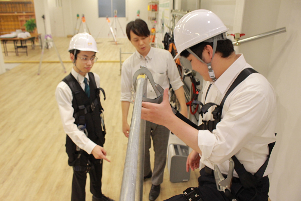 実技研修施設「夢トレ」という実際の現場を再現した研修会場で、建設現場での1日の流れや作業着・保護具の着用方法、作業工程や部材の把握など現場の基本を就業前に技術社員は体験します。未経験からはじめた技術社員のイメージギャップを早めに取り除き、現場に適応しやすいよう実践型の研修を数多く取り入れています。現場のニーズを反映した実践的な研修で、技術社員を育成してから夢真は現場に派遣しています。
